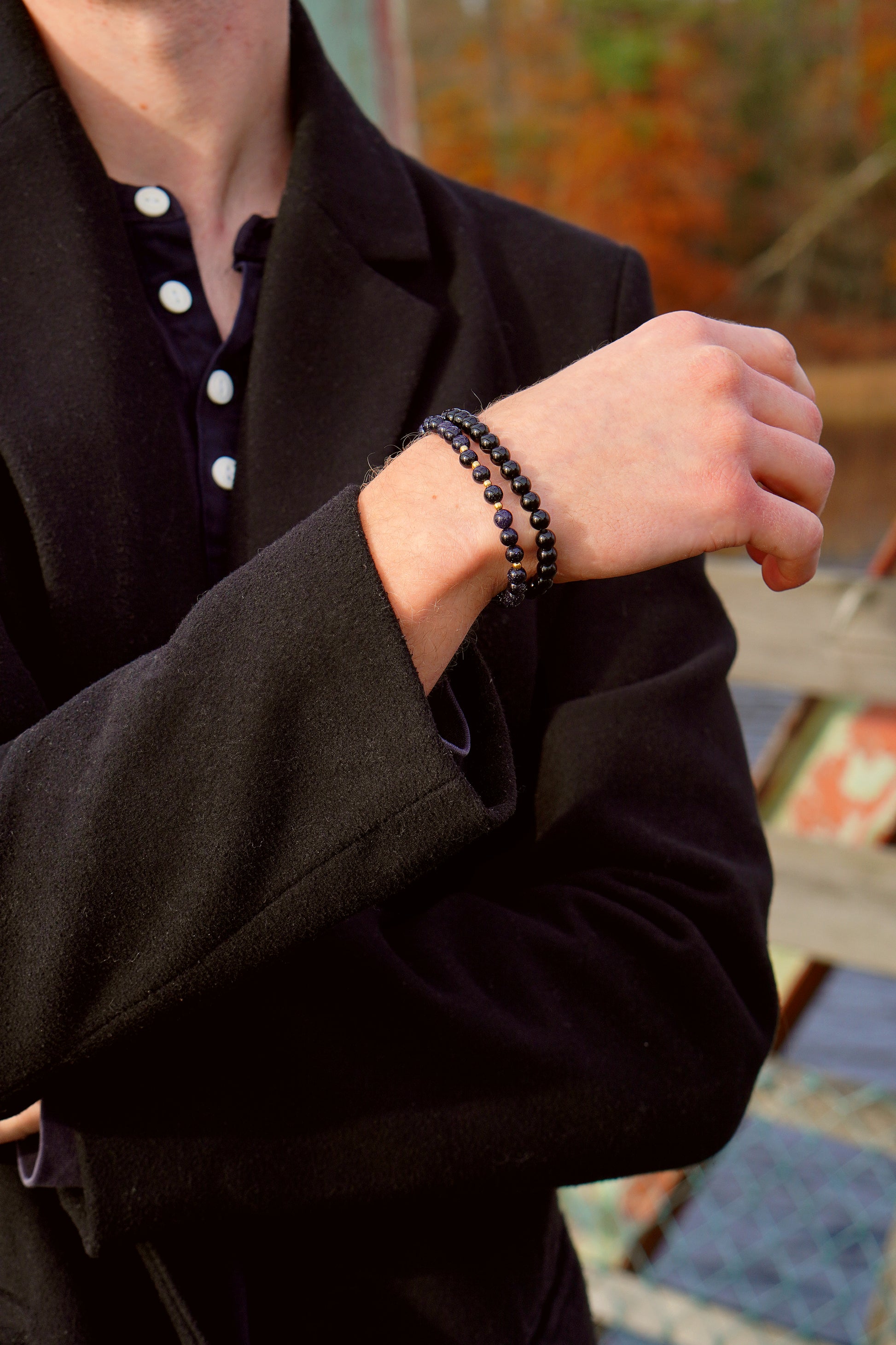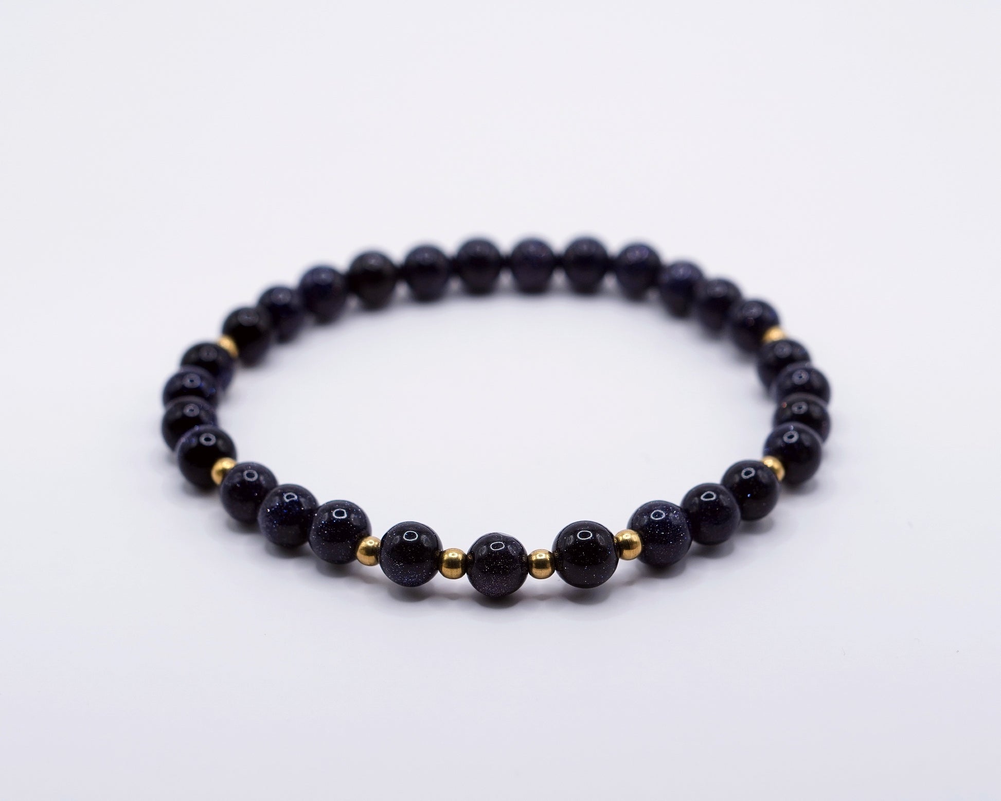 Detta armband kombinerar det bottenlösa blåa mönstret i bluestone med varm mässing.