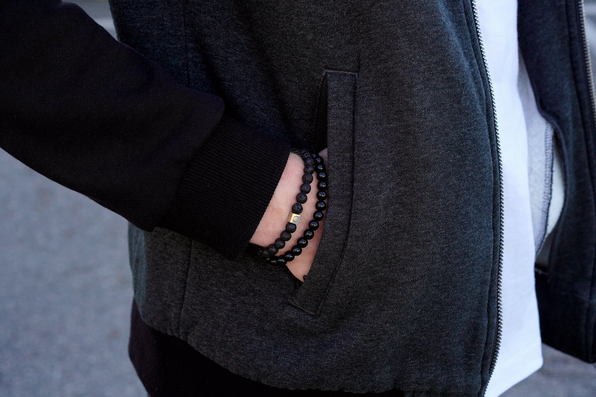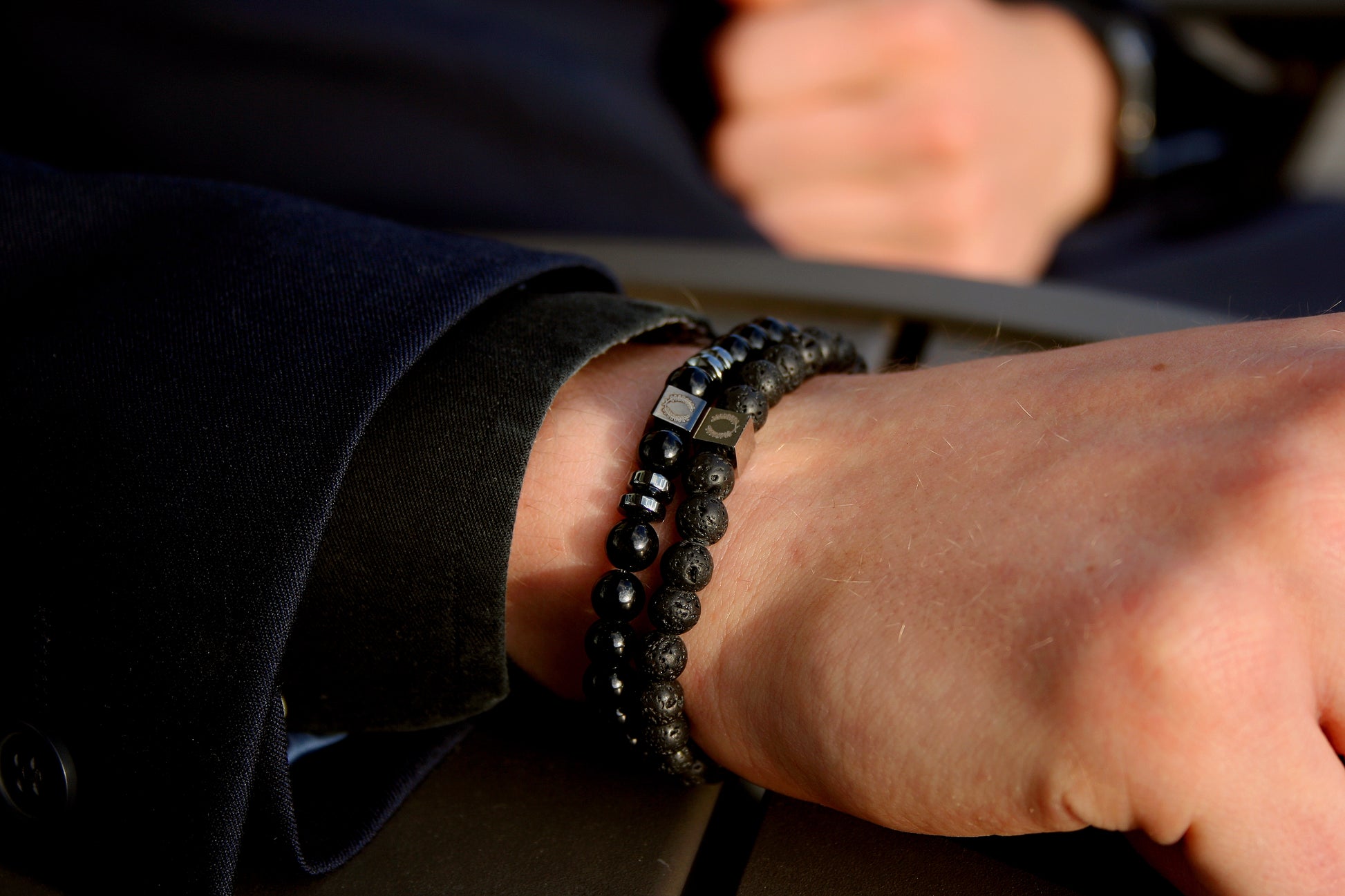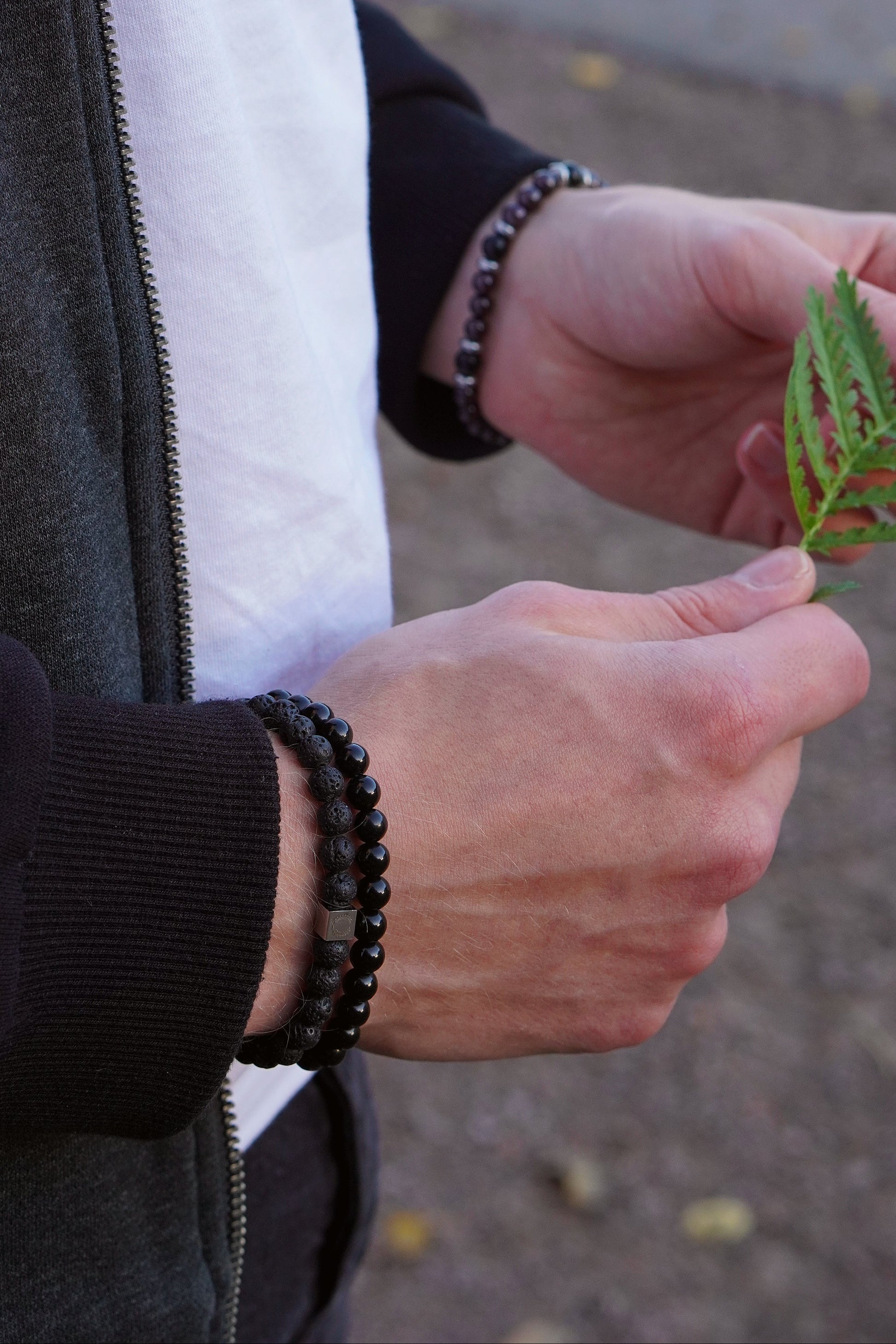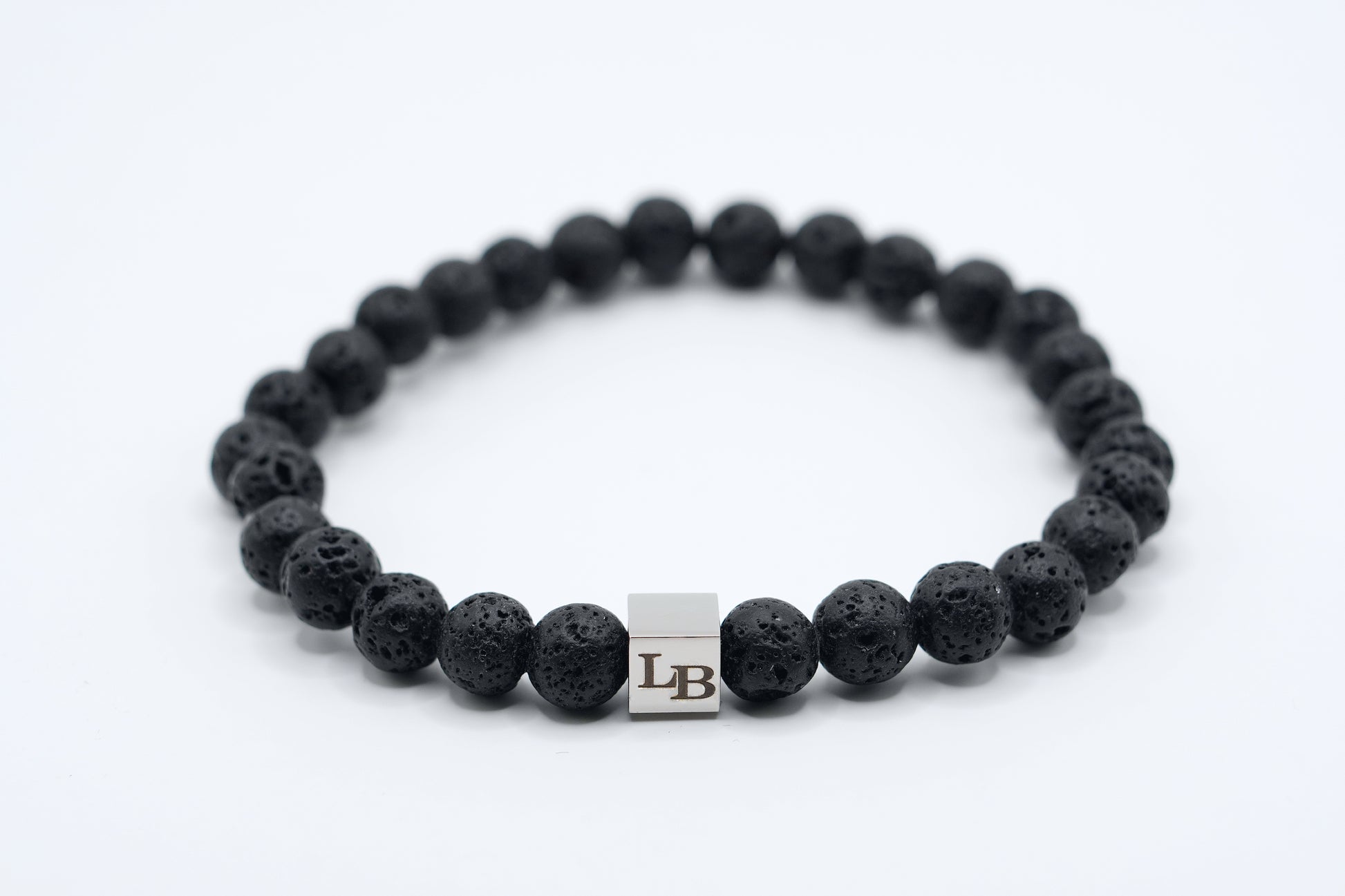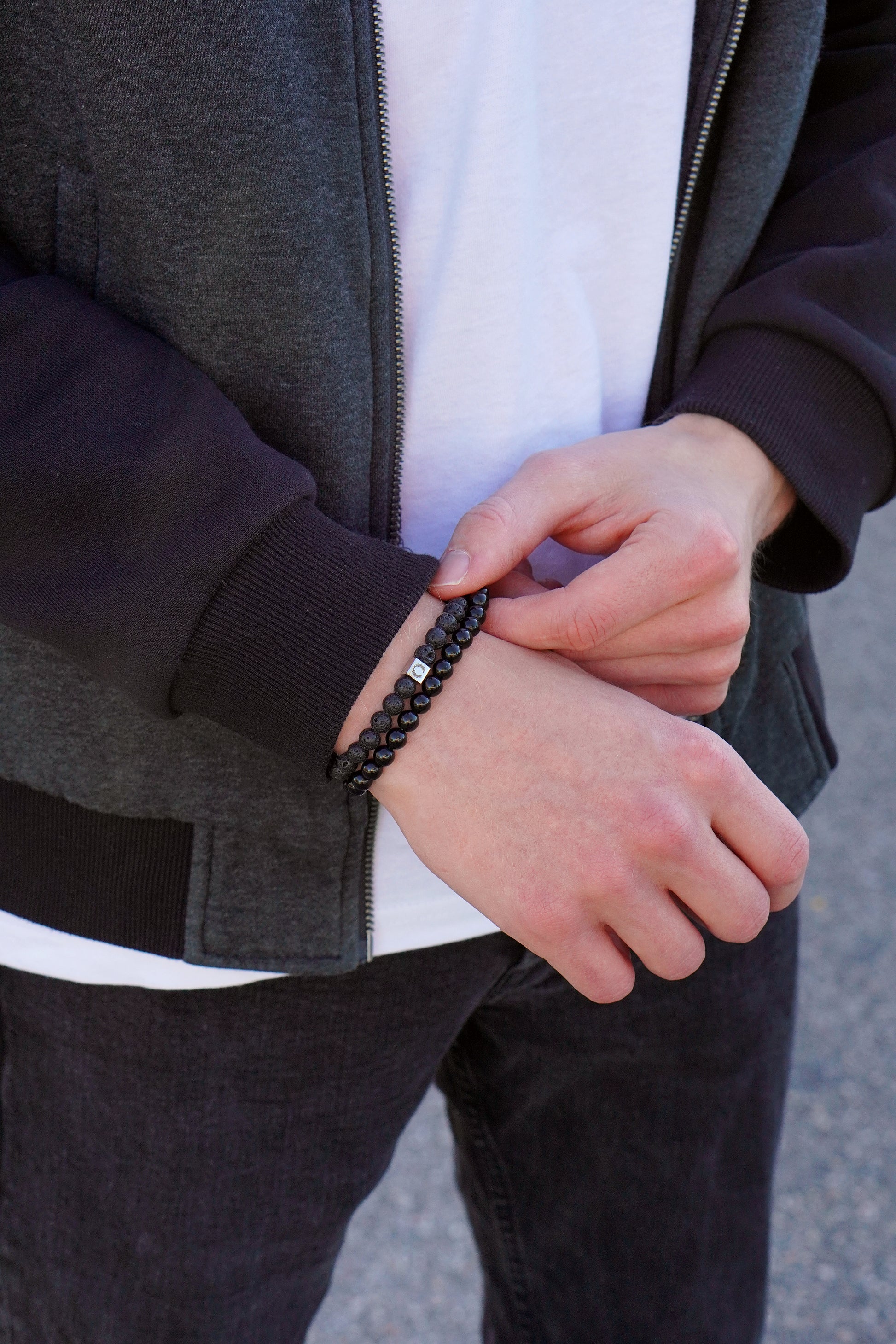 Detta armband av svart lavasten är en stilren och mångsidig accessoar. Med sina råa, naturliga stenar och den mattsvarta ytan ger armbandet ett robust och maskulint uttryck.