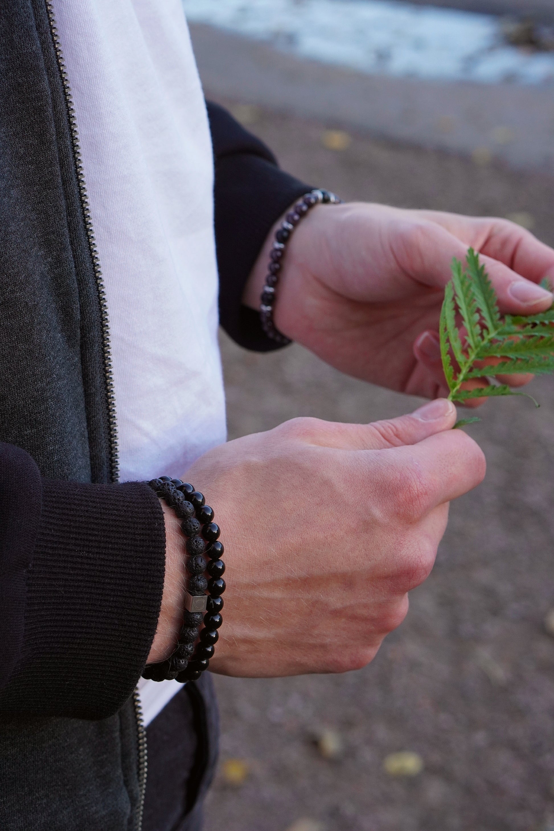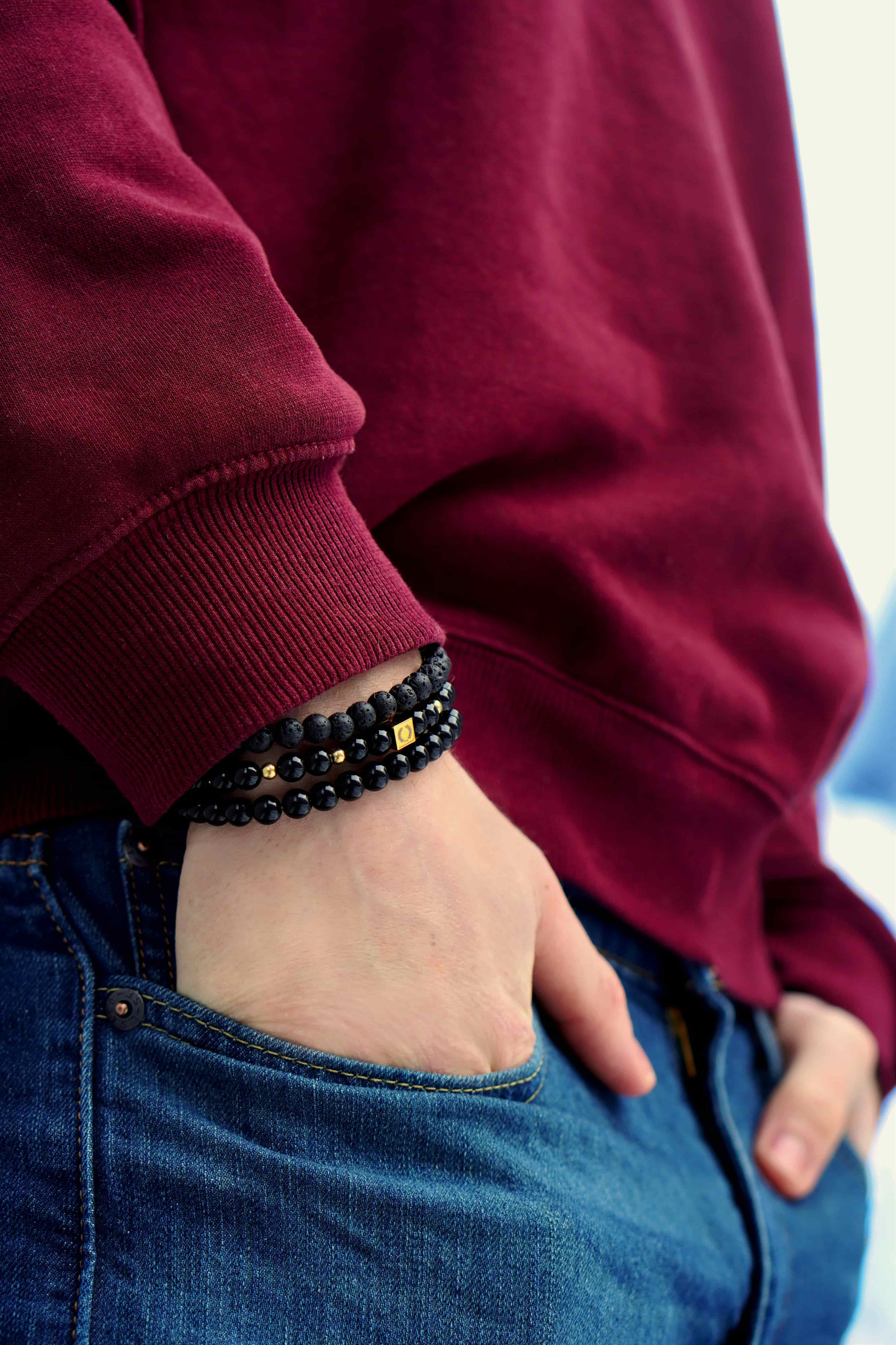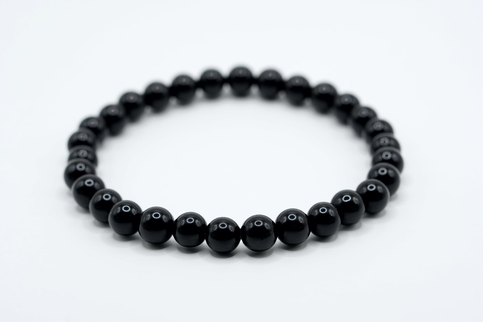 Detta armband i polerad kolsvart obsidian är perfekt för att skapa kontrast eller som en stilren detalj i en mörk stack.