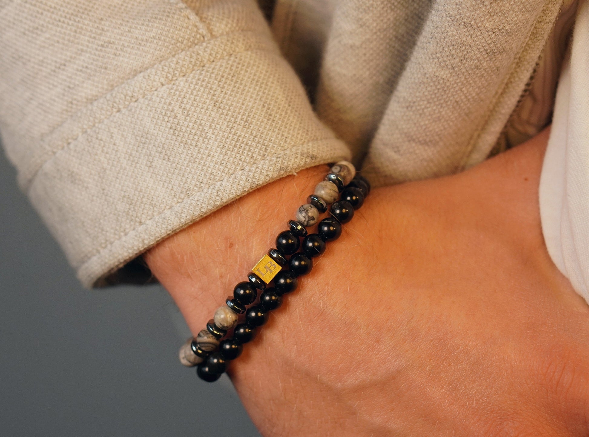 Som pricken över i:et sitter vår guldfärgade logopärla, inramad av svart obsidian för en tydlig kontrast.